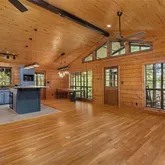 - Interior Features: Cathedral Ceiling(s), Decorative Lighting, Eat-in Kitchen, Kitchen Island, Natural Woodwork, Open Floorplan, Paneling, Tile Counters, Walk-In Closet(s)