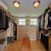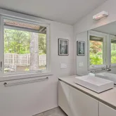 The primary bedroom suite is a haven of tranquility. Large windows bring the beauty of nature indoors, and the custom walk-in closet provides ample storage. The primary bathroom finishes this space with a spa-like setting. With an exit to the backyard deck, you’re invited to a serene Koi pond with a waterfall.