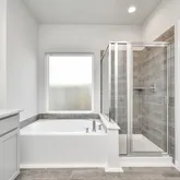 - Interior Features: Double Vanity, High Ceilings, Kitchen Island, Kitchen Family Room Combo, Pantry, Quartz Counters, Soaking Tub, Separate Shower, Tub Shower, Window Treatments, Ceiling Fans