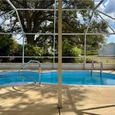 296 Riverwood Road is a standout property within the community. Featuring a majestic mature oak tree that provides shade and charm, this oversized parcel offers an abundance of usable space in the backyard — perfect for gardening, entertaining, or simply soaking in the tranquility of the surroundings. Create a private sanctuary for an ideal spot to enjoy a quiet afternoon. A fiberglass pool and a large covered patio are screened, offering year-round lifestyle opportunities. For added convenience, the property features rear access, making deliveries, maintenance, or party setups a breeze.