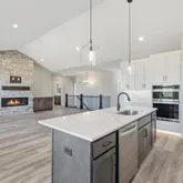 level. Step inside to discover an open concept design that seamlessly blends the living, dining and kitchen spaces. The kitchen offers a walk in pantry, SS appliances, soft close cabinetry, quartz countertops and a decorative tile backsplash. The large primary suite offers a spa like retreat with a luxurious soaking tub, a spacious tile shower and a large walk in closet. You will love the large stone fireplace in the living room along with many upgrades throughout the home. Experience luxury and functionality in this