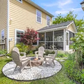 The exterior is equally impressive with a full backyard renovation featuring a firepit with rock seating, tiki torches, string lights, a new garden with lush plantings, and a custom walkway. This backyard retreat is designed for both relaxation and entertaining.