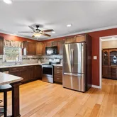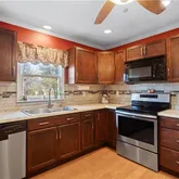 - Kitchen Features: Breakfast Bar, Cabinets Stain, Eat-in Kitchen, Laminate Counters, View to Family Room