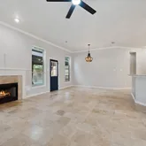 - Flooring: Carpet, Engineered Hardwood, Tile, Travertine