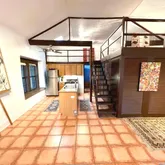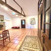 - Floor: Saltillo Tile, Wood, Unstained Concrete