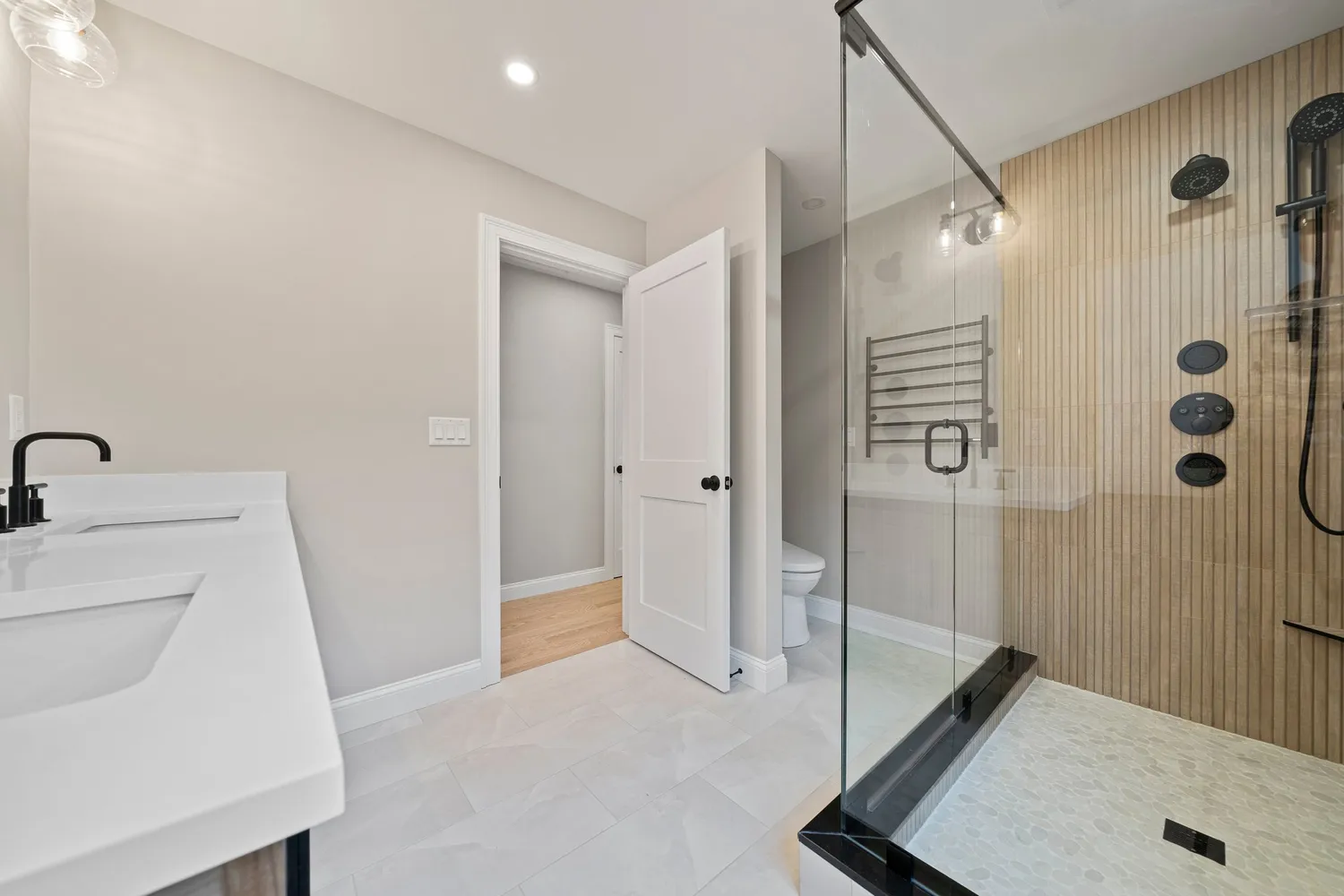 Enjoy 3-4 spacious bedrooms, with the primary suite featuring a spa-like bath complete with a stunning tiled shower, double sinks, and high-end fixtures. The gourmet kitchen shines with premium appliances and a thoughtfully crafted layout, ideal for hosting. Elegant trim work and hardwood flooring throughout add a timeless touch of sophistication.