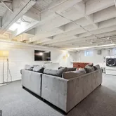 The partially finished basement has built-in cabinets and is set up as a comfortable bonus room. Laundry and utility sink are also located in the basement.