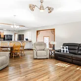 cozy brick wood burning fireplace, & new laminate flooring. Ample cabinet & countertop space in kitchen with large breakfast bar. Main floor living room. Updated main floor bathroom, & has a convenient large mud room. Partial finished basement offers