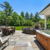 - Exterior Features: Porch, Patio, Covered, Hot Tub/Spa, Professional Landscaping, Sprinkler System, Decorative Lighting, Stone Wall