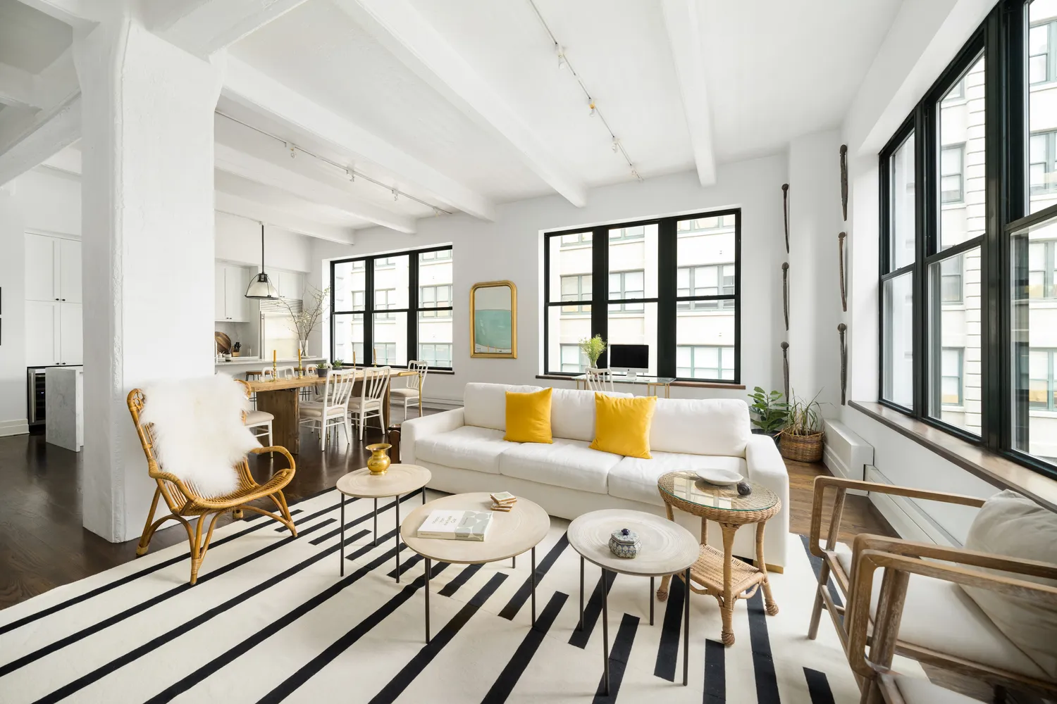 A sprawling...The epitome of Brooklyn loft living in the heart of DUMBO. This true 2 bedroom, 2.5 bath corner loft apartment is located in the much sought-after Sweeney Building. Generously proportioned with 1,689 interior square feet, this stunning home is complemented with 11' concrete beamed ceilings, oversized wall-to-wall windows in the expansive, corner great room and hardwood floors throughout. The airy ambiance is highlighted by bright south and east exposures bringing in tons of natural light.
