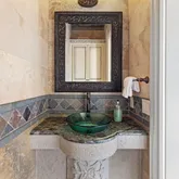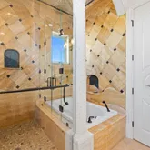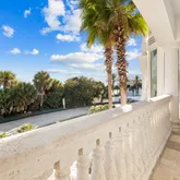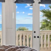 Ascending to the third floor via the winding stone staircase reveals double glass doors leading to the home's gym. This floor also hosts a second laundry room and an additional half bath. Adorned with beauty, a gorgeously appointed guest primary bedroom awaits, boasting a private ensuite bath with a soaking tub, shower, and a private balcony. The pinnacle of luxury awaits in the grand primary suite, featuring a large private balcony, custom closet, dressing room, and a regal bathroom with heated floors, a Jacuzzi tub, and a walk-in showerall commanding breathtaking Gulf vistas.