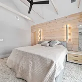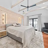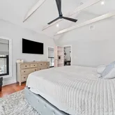 - Room Primary Bedroom Features: Bathroom - Full,Bathroom - Double Vanity/Sink,Cathedral Ceiling(s),Ceiling Fan(s),Beamed Ceilings,Walk-In Closet(s),Closet/Cabinets - Custom Built,Flooring - Hardwood,Balcony / Deck,French Doors,Exterior Access,Recessed Lighting,Lighting - Sconce,Decorative Molding