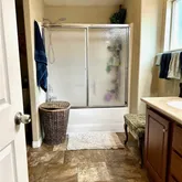 - Room Bathroom Features: Shower in Tub, Corian Counters, Linen Closet/Storage, Privacy toilet door, Bathtub, Double Sinks in Primary Bath