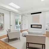 Upstairs, three secondary bedrooms offer serene proportions, each with ensuite baths and generous storage, including walk-in closets. The primary suite is conceived as a private retreat: a skylit sitting room with a two-sided fireplace, wet bar, and secluded balcony precede a spa-caliber bath featuring a soaking tub, steam shower, and expansive dressing room with dual walk-in closets. Completing this level is a bonus hang out space, perfect for relaxing before bed.