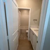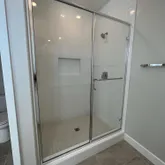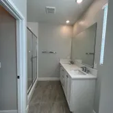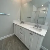 • Full-height ceramic tile showers, shaker-style soft-close cabinetry, and framed glass enclosures