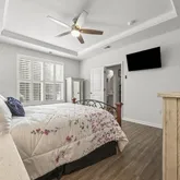- Interior Features: Master Downstairs, Solid Surface, Ceiling Fan(s), Blinds/Shades