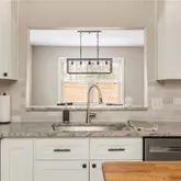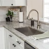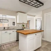 - Kitchen Features: Breakfast Bar, Cabinets White, Kitchen Island, Pantry Walk-In, Solid Surface Counters, Stone Counters