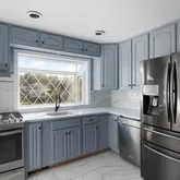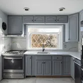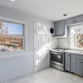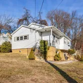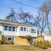 - Internet Remarks: A paver walkway leads to a welcoming open front porch at this renovated raised ranch, set on a desirable corner property. Large windows throughout create a bright, open feel with abundant natural light. The eat-in kitchen is updated with chair molding, wood cabinetry, quartz countertops, a porcelain tile backsplash, high-end stainless-steel appliances, and a picture window, with direct access to the deck. The dining area opens into the spacious living room, complete with a ceiling fan. Three bedrooms are located on the main floor and feature refinished hardwood floors, along with a full hall bathroom. The level also offers multiple closets throughout, providing excellent storage beyond the bedrooms. The lower level includes a large family room with a gas fireplace and ceramic tile surround, an office or media room with exterior access, and a full bathroom with decorative tile and a quartz vanity. A laundry area includes a newer washer and double-capacity dryer. Additional features include central air, recessed lighting, fresh neutral paint throughout, and ample storage on both levels. Outdoor living features a large paver patio with a built-in fire pit, ideal for entertaining. The property includes a one-car detached garage along with driveway parking. Conveniently located near the NY bus stop, shopping, dining, and local amenities.