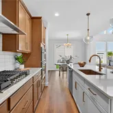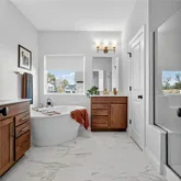 - Interior Features: Breakfast Bar, Breakfast Room, Ceiling Fan(s), Custom Cabinetry, Double Vanity, Entrance Foyer, High Ceilings, Kitchen Island, Open Floorplan, Pantry, Master Downstairs, Recessed Lighting, See Remarks, Separate Dining, Shower, Smart Thermostat, Solid Surface Countertop(s), Tub, Walk-In Closet(s)