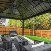 Out back, the large fenced yard features low-maintenance artificial grass and your very own putting green, so you can work on your short game without ever leaving home.