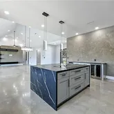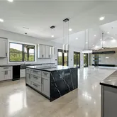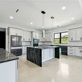 - Room Description 11: Stunning gourmet chef's kitchen with high-end luxury finishes; Waterfall quartz island with bar seating and a Samsung 36" smart induction cooktop with wifi; SS appliances include a Samsung Bespoke 30" double oven w/ all pro cooking camera, Samsung Bespoke 4 door French door fridge with beverage center, Cafe 24" drawer microwave, Cafe 24" dishwasher drawers, wine fridge, GE 15" trash compactor, and ice maker; SS farmhouse sink; Designer fixtures and tile backsplash; Large walk-in pantry