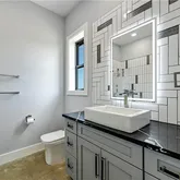 - Room Description 1: Main floor guest powder room with a modern sink