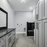 - Room Description 2: Amazing oversized laundry room with extensive cabinetry storage, a large folding vanity with tile backsplash, a modern sink, and a dog washing station!