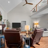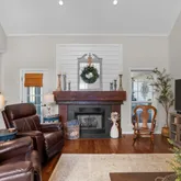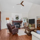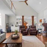The spacious living room offers the perfect gathering space, complete with a cozy fireplace--ideal for family time or hosting guests.