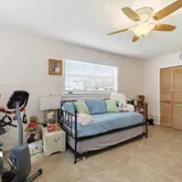 Offering 2,652 square feet of living space, this five-bedroom, three-bath residence is thoughtfully designed for flexibility and function, featuring two primary suites ideal for multi-generational living, guests, or home-office needs. The original garage was intentionally converted into an additional primary suite and laundry room, enhancing the home's livability, while still preserving a 1.5-car garage for traditional parking and storage.