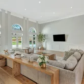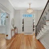 The living room is defined by soaring 18-foot ceilings, abundant natural light, and grand moldings that carry throughout the home. A formal dining room anchored by a fireplace sets...Exceptional estate offering just over 6,000 square feet of refined living space on a beautifully landscaped half-acre lot, located in the prestigious gated Enclave at Carronbridge. This 5-bedroom, 5.5-bath residence blends timeless architecture with elevated modern updates, delivering both grandeur and everyday livability.