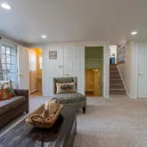 The lower level family room is the perfect retreat for reading, watching movies and football games. A wood burning fireplace adds to the warmth. Here you will also find a 1/2 bath, a full-sized laundry room and two additional gaming rooms/ cedar closet. There is also an abundance of storage room. This rear yard is accessible from this space.
