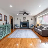 Step inside to discover a blend of modern style and classic comfort. The living room, kitchen, and dining room boast hardware flooring, creating a warm and inviting atmosphere perfect for everyday living. Newer windows are flooded with natural daylight creating a cheery atmosphere. The updated kitchen is a chef's dream, complete with sleek granite countertops that complement the home's modern aesthetic.