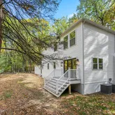 All new dual system HVAC, new plumbing, new electric, new roof, new siding, new plumbing, new recessed lighting and fixtures throughout, new flooring, new tile, etc. The house is a complete and total renovation and comes with a one-year builder warranty. The entrance is accented with a newly built portico with posts and metal roof, with flagstone pavers leading to the freshly blacktopped driveway.