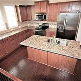- Kitchen Features: Cabinets Stain, Kitchen Island, Pantry, Solid Surface Counters, Stone Counters, View to Family Room