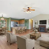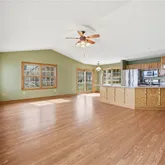 - Interior Features: Breakfast Bar, Ceiling Fans, Den, Entrance Foyer, Separate Formal Living Room, Home Office, Kitchen Family Room Combo, Living Dining Room, Pantry, Pull Down Attic Stairs, Sliding Glass Doors, Second Kitchen, Natural Woodwork, Bedroom On Main Level, Main Level Primary, Primary Suite