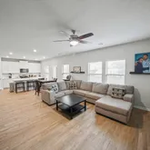- Interior: One Living Area, Liv/Din Combo, Island Kitchen, Breakfast Bar, Game Room, Utility Room Inside, Secondary Bedroom Down, 1st Floor Lvl/No Steps, High Ceilings, Open Floor Plan, Cable TV Available, High Speed Internet, Laundry Upper Level, Laundry Room, Walk in Closets