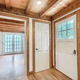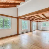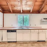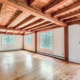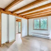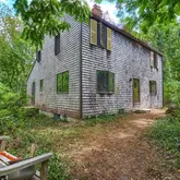 The walkout basement has a small workshop/project room & washer/dryer hookups. Both bathrooms need updating, kitchen needs remodel & in need of some exterior...This 3 BR, 1.5 bath colonial sits on a private wooded 1.4 acre lot. The home features wide pine floors throughout, exposed post & beam construction, vaulted beamed ceiling in kitchen & dining areas. First floor has a small bedroom & a half bath. Second floor has an additional bedroom, full bath, as well as a Primary bedroom with walk-in closet.