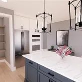 - Kitchen Features: Cabinets White, Eat-in Kitchen, Kitchen Island, Pantry, Stone Counters, View to Family Room