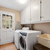 - Laundry Features: Closet/Cabinets - Custom Built, Flooring - Hardwood, Electric Dryer Hookup, Exterior Access, Washer Hookup, Sink, First Floor
