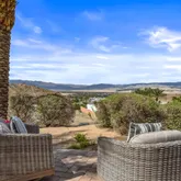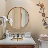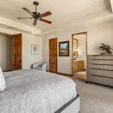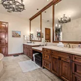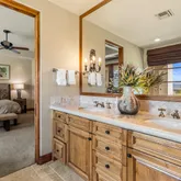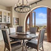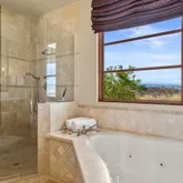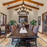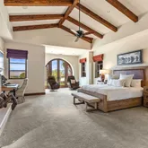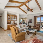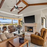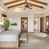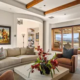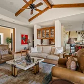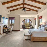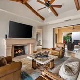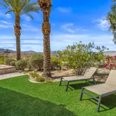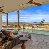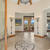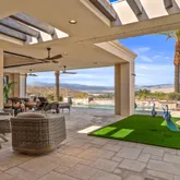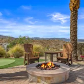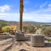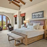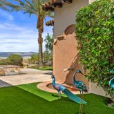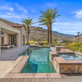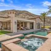 Great for hosting parties and entertaining. The main suite offers views of the city lights and surrounding mountains, spacious closets, dual sinks, and a large walk-in shower. The yard is perfectly appointed with a private courtyard with a fireplace and water features. A large pool overlooks the valley floor and mountain views, a fire pit, a misting system, water features, putting green, and plenty of places to bask in the sun, eat dinner, or have an intimate conversation with friends. You have the perfect location within walking distance of the Ritz Carlton, which includes multiple restaurants and entertainment. This is one of the most elegant desert rentals available.