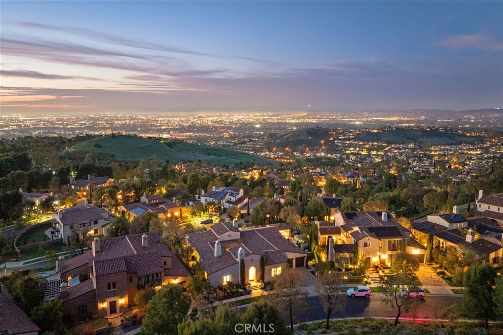 Discover the crown jewel of Turtle Ridge—an exquisite single-story La Cima residence perched on a private, elevated cul-de-sac on a single loaded street at one of the highest points in this prestigious guard-gated community. As one of only three La Cima single-story homes in this premier location, this magnificent 4,100 square foot estate commands breathtaking panoramic views of mountains and sparkling city lights as far as the eye can see. Step through the romantic breezeway and welcoming courtyard...Discover the crown jewel of Turtle Ridge—an exquisite single-story La Cima residence perched on a private, elevated cul-de-sac on a single loaded street at one of the highest points in this prestigious guard-gated community. As one of only three La Cima single-story homes in this premier location, this magnificent 4,100 square foot estate commands breathtaking panoramic views of mountains and sparkling city lights as far as the eye can see. Step through the romantic breezeway and welcoming courtyard into a thoughtfully designed open floor plan featuring soaring vaulted ceilings and an abundance of natural light. The front foyer showcases a breathtaking $85,000 chandelier that exemplifies the level of luxury throughout. This architectural masterpiece offers four ensuite bedrooms, four-and-a-half bathrooms, a formal dining area, versatile bonus room, generous guest casita, and a meticulously designed three-car garage with custom honeycomb lighting for the automotive connoisseur. The professional-grade kitchen features a massive granite island, walk-in pantry, and premium Viking appliances that will satisfy the most discerning chef. Throughout the residence, you'll find custom built-ins, designer finishes, hand-selected stone accents, and elegant crown molding. Step outside to your own private resort oasis with salt water pool and spa, three inviting fireplaces, and a luxurious entertainment cabana. The outdoor kitchen is equipped with Viking grills, refrigerator, kegerator, and ample counter space, while multiple covered lounging areas, flat-screen TVs, and a swim-up bar create the ideal setting for entertaining. The primary suite provides a tranquil sanctuary with an extraordinary walk-in closet featuring custom organization systems. Additional premium amenities include a multi-camera security system, multi-zone audio, whole-house water filtration, and designer finishes throughout. Situated in the highly desirable Summit at Turtle Ridge near award-winning Vista Verde Elementary, TVT, and University High School, this exceptional property offers the perfect blend of luxury, privacy, and convenience in one of Irvine's most coveted neighborhoods. Conveniently located near the 405 and 73 freeways, you'll enjoy quick access to California's most renowned beaches, world-class shopping destinations, and exquisite restaurants. Homes of this caliber rarely become available in this unrivaled locale—an opportunity not to be missed.
