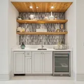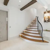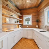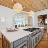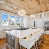 A rooftop pool and fifth-floor observation deck create an unmatched outdoor experience, offering sweeping vistas of the Gulf that serve as a serene retreat or a dramatic backdrop for entertaining. Every detail of the outdoor design speaks to refined coastal living at its highest expression. Inside, French limestone and wide-plank white oak flooring are laid in a striking herringbone pattern, bringing warmth, texture, and timeless character to the space. Custom cypress built-ins, including a walk-in pantry wrapped entirely in cypress, showcase meticulous attention to detail and a commitment to quality materials.