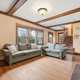 - Room Living Room Features: Beamed Ceilings,Flooring - Hardwood,Exterior Access,Crown Molding