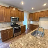 - Kitchen Features: Breakfast Bar, Breakfast Room, Cabinets Stain, Kitchen Island, Stone Counters, View to Family Room