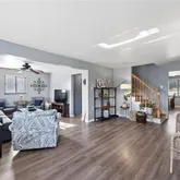Inside, you’ll find updated flooring throughout the home paired with freshly painted interiors that create a bright, cohesive flow from room to room. The kitchen has been refreshed with updated appliances, painted cabinetry, and functional improvements, while ceiling fans added to the living room and bedrooms bring comfort and efficiency. Both upstairs bathrooms feature newer toilets and the primary half bath has been updated to add a modern touch.