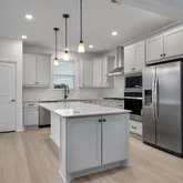 - Room Description: Gleaming stainless-steel appliances, including a refrigerator, join with gorgeous quartz counters and upgraded cabinets for a magazine-perfect look at this delightful Open Island Kitchen, where a well-placed window resides above the sink. There, scenic views of the abutting greenbelt add everyday enjoyment.