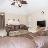 Spacious Open Floor Plan: A seamless flow between the kitchen and living areas, complete with abundant counter space and cabinetry for easy meal prep and entertaining. Vaulted Ceilings: Elegant vaulted ceilings in the living room and primary bedroom, creating a sense of space and grandeur. Bright & Inviting: Large windows and tile flooring throughout bring in plenty of natural light, making every room feel warm and welcoming. Cozy Wood-Burning Fireplace: A charming focal point in the living room, perfect for cozy evenings at home. Convenient Features: Including walk-in closet lights that automatically turn on, adding both accessibility and ease. Outdoor Living: A private patio off the kitchen and dining area—ideal for grilling, dining, or simply relaxing.