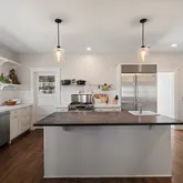 Main living areas flow effortlessly for everyday living and entertaining, with clean lines, warm natural materials, and abundant natural light throughout. The kitchen is outfitted with premium appliances, including a Sub-Zero refrigerator and two Bosch dishwashers.