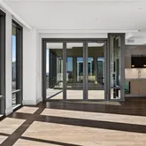 Soaring 10-foot ceilings, wood flooring, and automatic roller shades throughout! The residence includes a temperature-controlled storage unit and two adjacent parking spaces with an electric car charger connection.