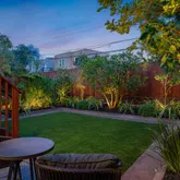 - Lot Features: Curb(s)/Gutter(s), Garden, Landscape Back, Landscape Front, Landscape Misc, Shape Regular, Street Lights